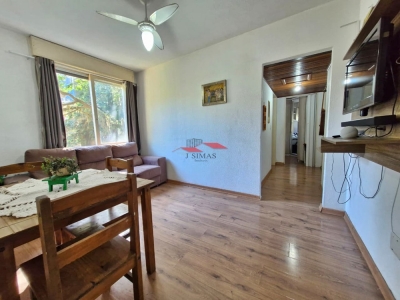 Com 2 dormitórios, banheiro, sala integrada e 1 vaga de garagem,